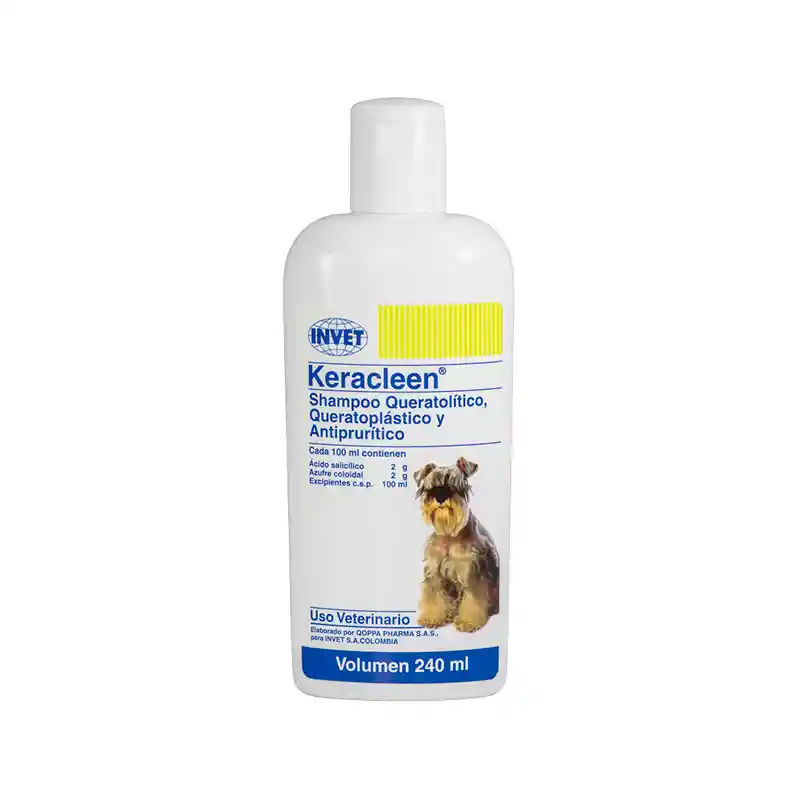 Shampoo queratolítico, queratoplástico y antiprurítico para el tratamiento de la seborrea y dermatitis pruriginosa en Perros. Disminuye en forma efectiva la formación de escamas