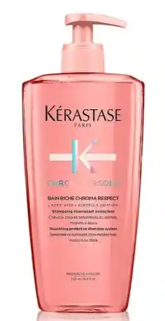 Bain Chroma Respect es un shampoo protector, suave e hidratante para todo tipo de cabello sensibilizado, teñido y dañado, adaptado para cabello fino y medio. Esta cremosa textura rosa hidrata profundamente y cuida la fibra capilar mientras respeta y preserva el color. Enriquecida con una combinación potente de Aminoácido y Centella Asiática, este avanzado shampoo penetra en el centro de la fibra para un cabello más fuerte y resiliente.