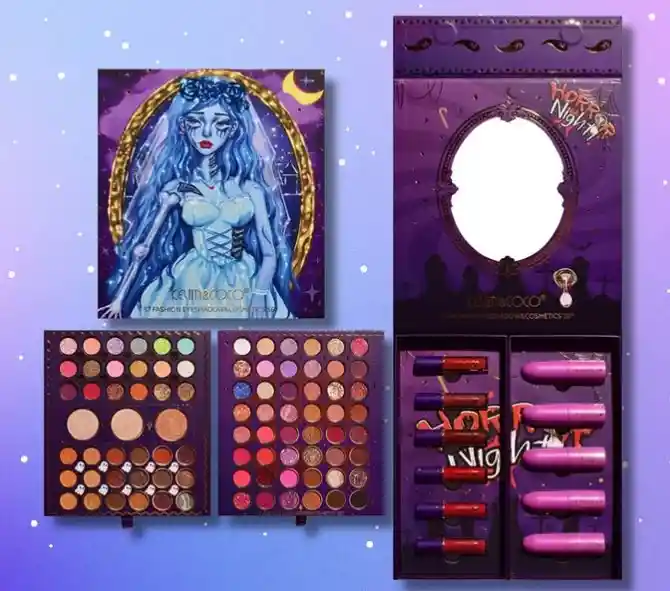 Set Maquillaje Halloween Novia ®️Kevin Coco Incluye: 2 paletas de sombras (87 colores) 6 lipgloss 5 labial en barra matte