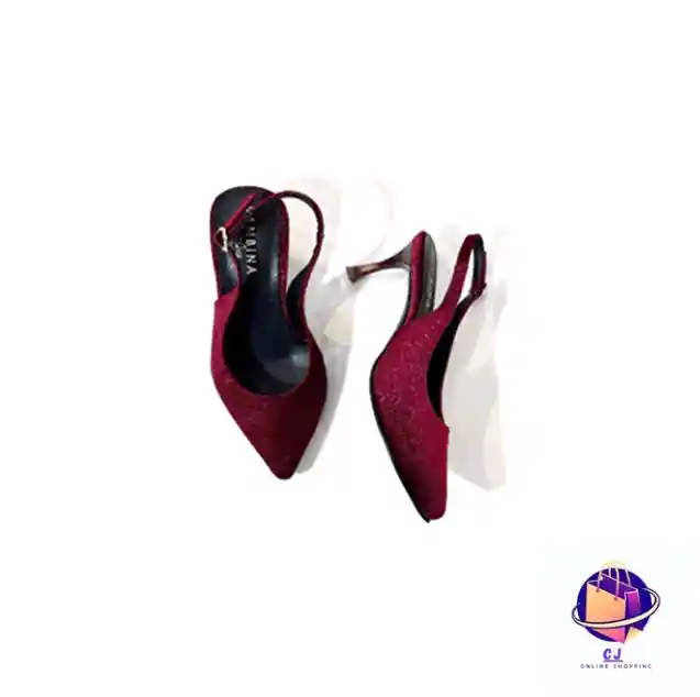 Glamour clásico con destellos profundos. Una zapatilla slingback en un sofisticado color vino tinto con acabado de micro-glitter. Su silueta de punta fina y tacón arquitectónico delgado es la definición de la elegancia atemporal para la mujer ejecutiva o de eventos sociales.