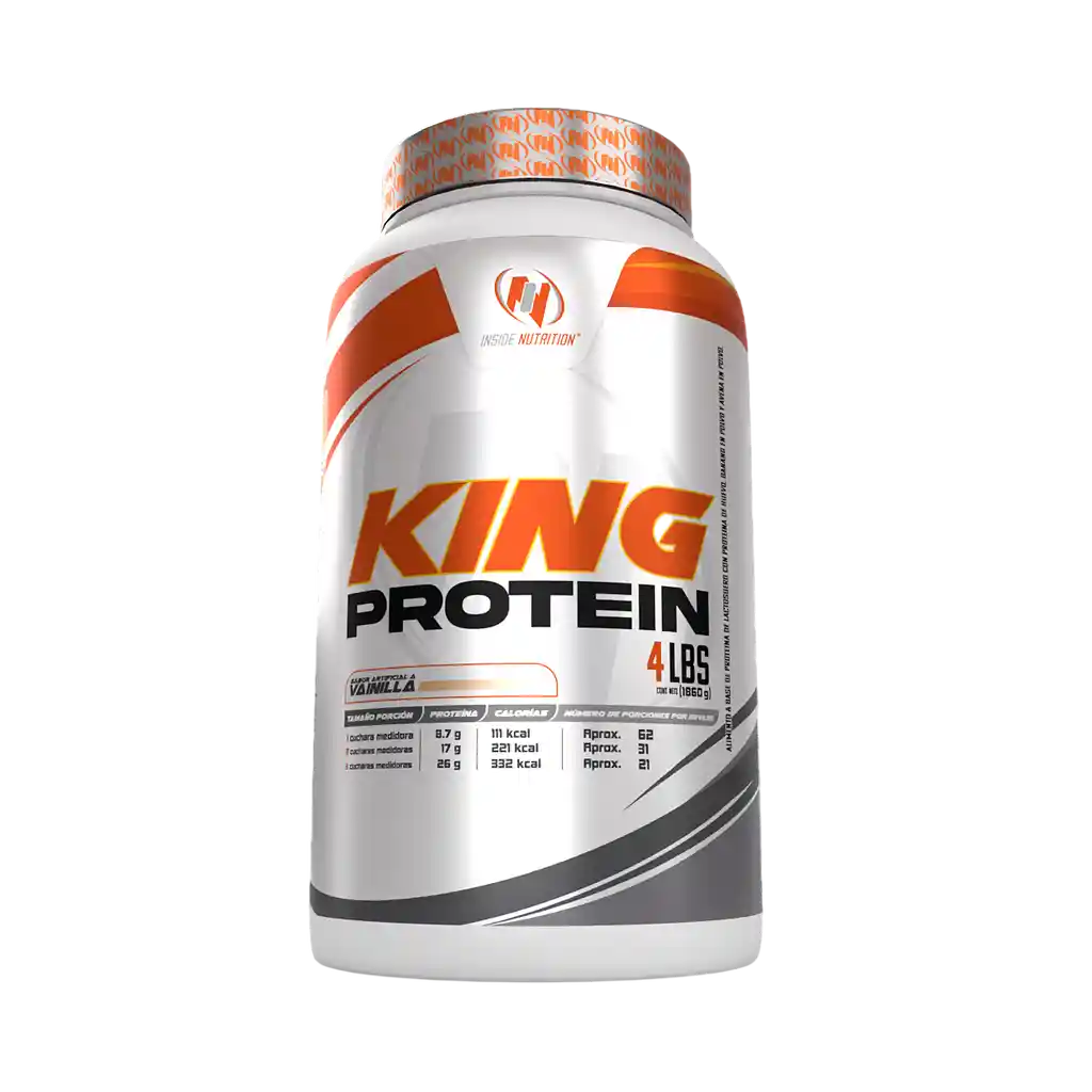 King Protein de Inside Nutrition es una proteína hipercalórica altamente concentrada, específica para etapa de volumen. Combina la acción de 2 proteínas en 1 mismo producto Suero de leche y Proteína de huevo, fortificada con los nutrientes de la Avena y Banano. Es Ideal para personas de bajo peso o atletas que entrenan un objetivo de construcción y ganancia de masa muscular limpia. Beneficios: Aporta una cantidad significativa de proteína de alta calidad para apoyar el crecimiento y la reparación muscular, ideal para personas que buscan aumentar su masa muscular. Proporciona una fuente sustancial de energía, esencial para mejorar el rendimiento durante el entrenamiento y acelerar la recuperación post-ejercicio. Ofrece una cantidad considerable de calorías para quienes necesitan aumentar su ingesta calórica diaria, favoreciendo el aumento de peso de manera saludable. Perfecto para aquellos que desean controlar su ingesta de grasas y mantener un perfil lipídico saludable, contribuyendo a una dieta balanceada y saludable. Modo de uso: 1 scoop (cuchara dosificadora) aporta 8.7g de proteína y te rinde aproximadamente 62 servicios. 2 scoops (cuchara dosificadora) aportan 17g de proteína y te rinde aproximadamente 31 servicios. 3 scoops (cuchara dosificadora) aportan 26g de proteína y te rinde aproximadamente 21 servicios.