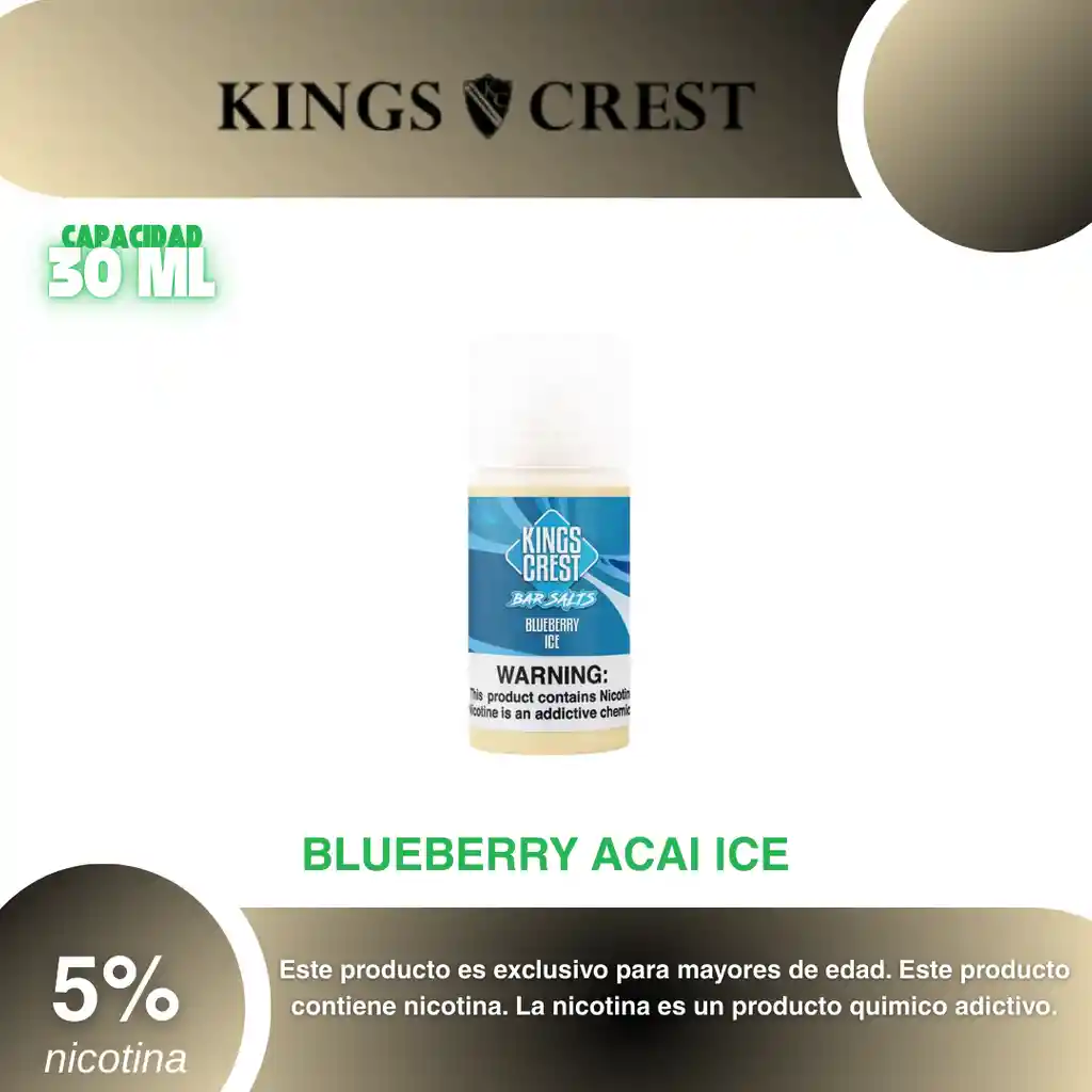 Kings Crest Salt Sabor Arandano Mentolado 50% PROHIBIDA LA VENTA A MENORES DE EDAD. ADVERTENCIA: ESTE PRODUCTO CONTIENE NICOTINA, LA NICOTINA ES UNA SUSTANCIA QUIMICA ADICTIVA Y NOCIVA PARA LA SALUD. Los líquidos para vapeo contienen: propilenglicol USP, glicerina USP, sabor artificial y nicotina. Este producto puede contener nicotina, una sustancia altamente adictiva que puede generar dependencia, posibles afectaciones arteriales, cardiacas, pulmonares y otras aun no identificadas. No se recomienda su uso a mujeres en embarazo, puede generar lesiones al feto. Mantener alejado de niños y mascotas. No ingerir, puede generar irritación y/o intoxicación. Por favor antes de consumir consulte a su médico posibles afectaciones o sensibilidad a alguno de sus componentes. Los componentes de este producto pueden aumentar la sensación de ansiedad En caso de notar alguna reacción adversa por favor suspenda su uso de manera inmediata. Siga las instrucciones en el envase. No alterar sus componentes. Adquiera sus productos en sitios de confianza No use productos piratas, alterados, o en los cuales no pueda comprobar su buena procedencia, Verifique la reputación del fabricante y distribuidor antes de adquirir cualquier producto Si no es usuario fumador o vapeador no se recomienda su uso bajo ninguna circunstancia Al usar este producto usted es consciente que este producto puede generar afectaciones a su salud, incluyendo aquellas que a la fecha de la compra no se han identificado y que pueden aparecer a largo plazo