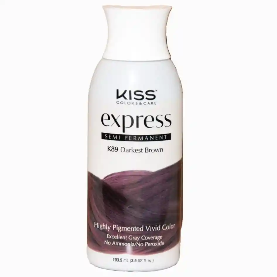 KISS EXPRESS K89 DARKEST BROWM 103.5 ML : es un tinte semipermanente de alta pigmentación utilizado principalmente para teñir, sombrear y dar forma a la barba, vello facial y cabello. Sin amoníaco ni peróxido, ofrece una cobertura intensa de canas y un color vibrante que dura más de 12 lavados, siendo muy popular en barberías para definir contornos. Usos Principales de Kiss Express: Barbería y Diseño: Se utiliza frecuentemente con aerógrafo para resaltar la barba, definir contornos y cubrir zonas despobladas. Cobertura de Canas: Proporciona una cobertura excelente y duradera, especialmente en vello facial. Refuerzo de Color: Ideal para refrescar el color, intensificar tonos oscuros o matizar después de una decoloración. Aplicación Segura: Su fórmula con pH equilibrado permite usarlo en barba y cabello sin dañarlos, incluso después de procesos químicos. Características Clave: Sin mezcla: Es de aplicación directa, aunque puede diluirse con agua para el uso en aerógrafos. Duración: Generalmente dura de 6 a 9 días en la piel (barba) y más de 12 lavados en el cabello.