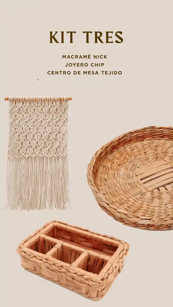 Ideal para regalar a tu persona favorita; incluye macramé nick + centro de mesa tejido + joyero chic