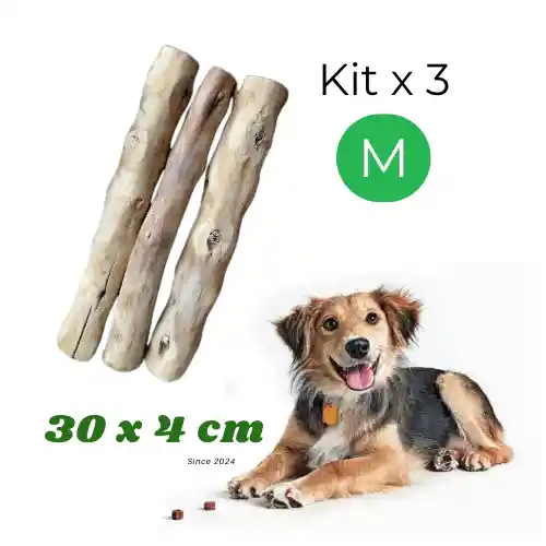 Dale a tu perro una alternativa natural y segura para morder ¿Tu perro rompe muebles o busca palos en la calle? Con los Palos de Madera de Café tendrá un juguete resistente, 100% natural y saludable que cuida su salud dental mientras se divierte. Beneficios principales - Limpieza dental natural: la fibra de la madera actúa como seda dental, reduciendo sarro y placa. - Reduce el estrés y la ansiedad: satisface el instinto natural de morder. - Durabilidad garantizada: ideal incluso para mordidas fuertes. - 100% natural y ecológico: libre de químicos, cafeína y aditivos. - Apto para perros sensibles: no contiene alérgenos comunes. - Sin calorías: no afecta la dieta de tu perro. - Diversión y vínculo: fomenta el juego interactivo con tu mascota. Guía de tallas Elige el tamaño ideal según el peso de tu perro: XS: 30 x 1.5 - 2 cm / 120 g / perros 2 a 5 kg S: 30 x 2 - 3 cm / 200 g / perros 5 a 8 kg M: 30 x 3 - 4 cm / 300 g / perros 8 a 12 kg L: 30 x 4 - 5 cm / 400 g / perros 12 a 20 kg XL: 30 x 5 - 7 cm / 500 g / perros más de 20 kg Pregunta frecuente ¿Qué pasa si mi perro se come un pedazo? No te preocupes, la madera de café es natural, digestiva y segura. Actúa como fibra y hasta ayuda en la limpieza dental. Compra con confianza Envíos rápidos a todo el país Producto natural, seguro y probado Garantía del vendedor: 3 días Dale a tu perro un juguete saludable, duradero y ecológico. Agrega este kit al carrito y sorprende a tu peludo hoy mismo.