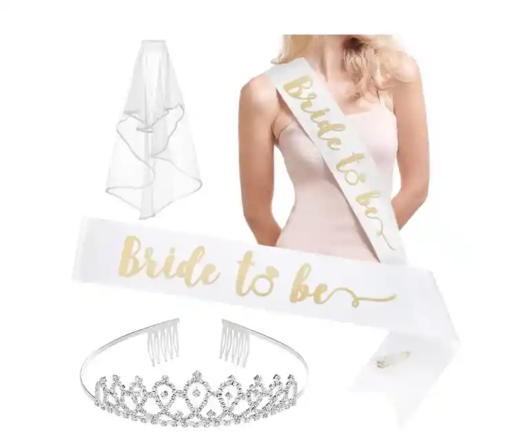 Kit Accesorios Despedida Soltera Bride To Be Matrimonio contiene velo para novia banda corona metalica