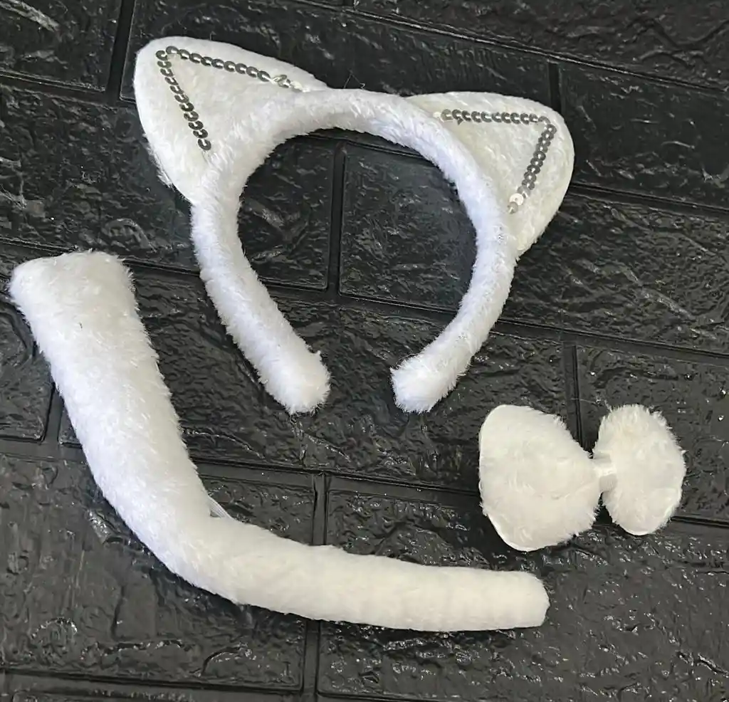 KIT ACCESORIOS GATA BLANCA DISFRAZ HALLOWEEN COD.4373