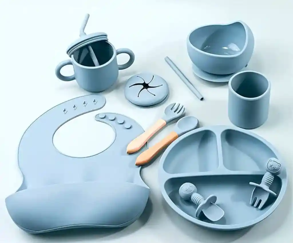 Set de Alimentación ideal para Bebés x8 Piezas, es libre de BPA, seguro su uso, y es antideslizante. El set incluye 8 piezas que cumple para las diferentes necesidades de comida de bebé. Las piezas incluidas son las que salen en la foto. Materiales: Silicona.