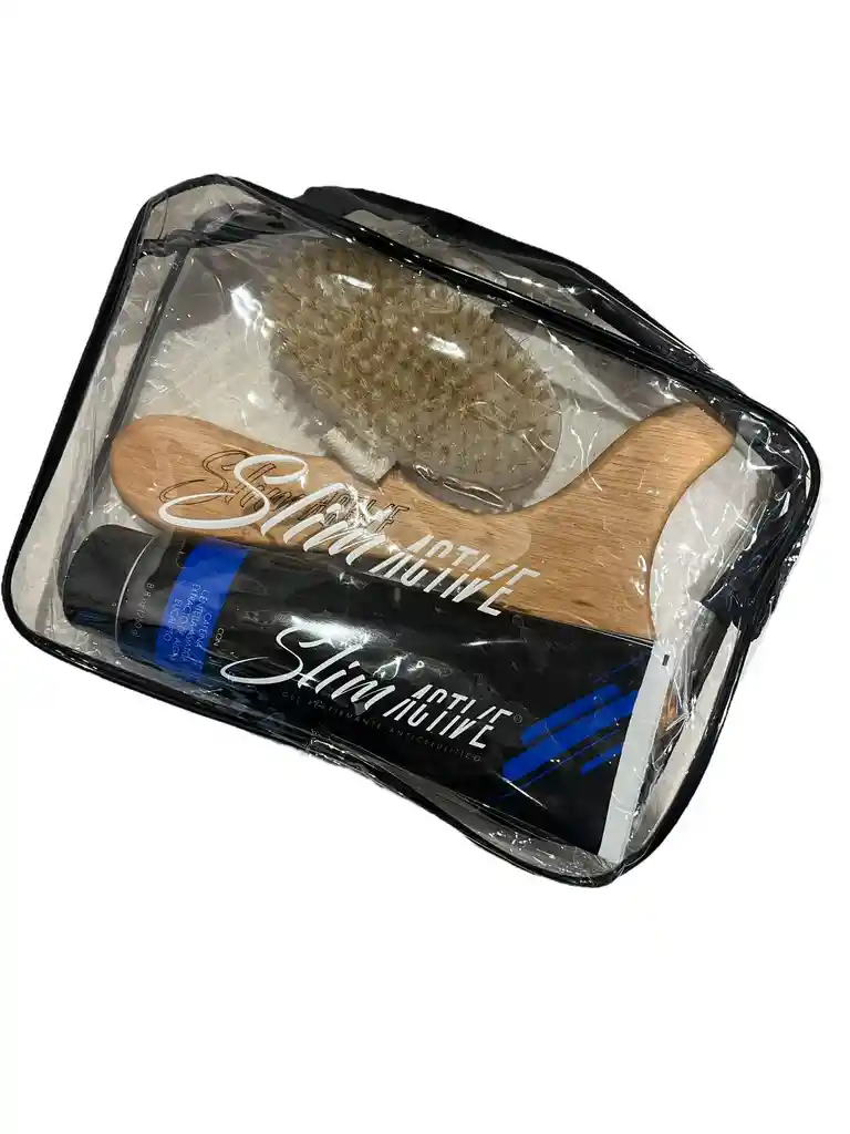 Nuestro Kit Anticelulítico ( Gel frio, Cepillo en seco y Tabla de Maderoterapia o guasha) Logra tonificar el cuerpo, minimizar la retención de líquidos, tratar la grasa localizada y estimular la producción de elastina. Nos ayuda a combatir la adiposidad localizada y modelar zonas como la cintura, los glúteos, los muslos o el abdomen.
