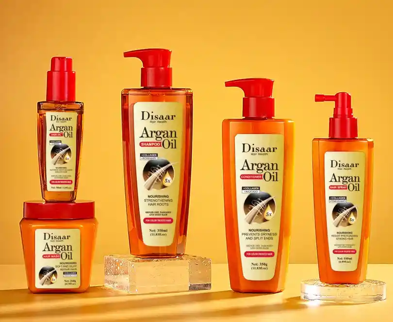 KIT CAPILAR REPARADO CON ARGAN OIL DISAAR PARA CABELLOS MALTRATADOS Y SIN VIDA Contiene: - Shampoo Nutritivo 350ml - Acondicionador Nutritivo 350g - Mascarilla Capilar Intensiva 260g - Termoprotector liquido 180ml - Aceite Argan 50ml Kit reparados con argan. Renueva tu cabello en 5 pasos. Dale nueva vida a tu cabello con nuestro kit de cuidado capilar con Argan, una rutina completa de 5 productos diseñados para reparar, nutrir y fortalecer el cabello dañado y sin vida. El aceite de argan, conocido como "el oro liquido del cabello", es el protagonista de esta podrosa formula rica en acidos grasos, vitamiba E y antioxidante, ayuda a restaurar la hidratante, suavidad y brillo natural de tu cabello. - Shampoo Nutritivo: Limpia suavemente sin resecar, elimina impurezas y acumulacion de productos. - Acondicionador Reestructurante: Desenreda y sella la hidratacion para un cabello mas suave y manejable. - Mascarilla Capilar Intensiva: Tratamiento profundo que repara el daño y fortalece la fibra capilar. - Termoprotector liquido: Protege contra el calor de secadoras y planchas, evitando la quiebra y el frizz. - Aceite de puntas: Sella y nutre las puntas abiertas, dejando un acabado sedoso y brillante. Ideal para todo tipo de cabello, especialmente para cabello secos, dañados o sin vida