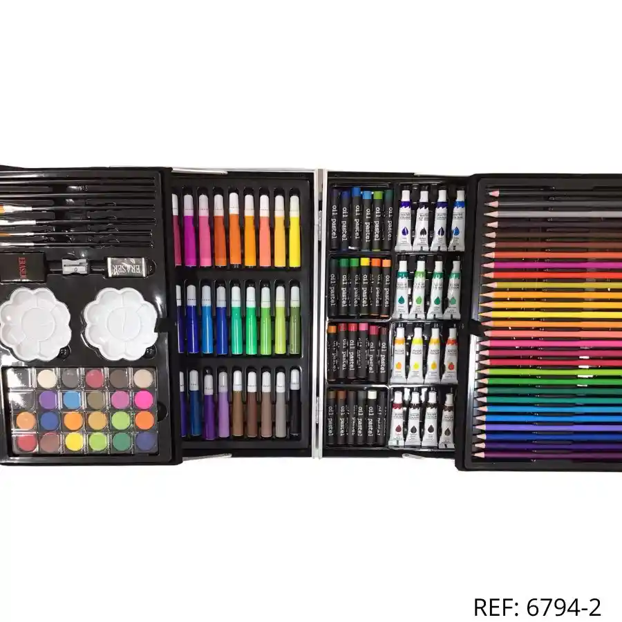 Maletín de arte con colores, crayones, pinturas y marcadores. Ideal para niños creativos.