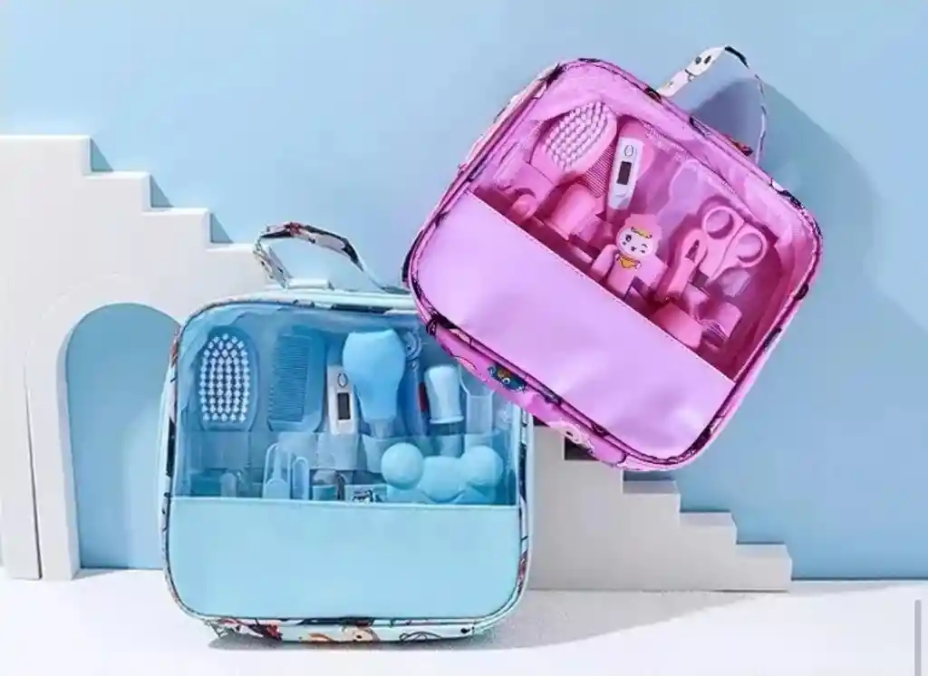 "Kit de Higiene y Cuidado para Bebé – 13 Piezas Esenciales para Recién Nacido ¡Todo lo que tu bebé necesita para su cuidado diario en un solo kit! Este completo Kit de Higiene y Cuidado de 13 piezas está diseñado para acompañarte en cada momento importante del aseo de tu bebé: desde el baño, el peinado y la limpieza, hasta el control de la temperatura y la administración segura de medicinas. Es perfecto para usar en casa, llevar en el bolso viajero del bebé o entregar como un regalo útil y práctico para recién nacidos. Incluye herramientas seguras, suaves y especialmente diseñadas para la piel y el cuidado delicado de bebés desde los primeros días. ESPECIFICACIONES Producto: Kit de higiene y cuidado para bebé Número de piezas: 13 Edad recomendada: Desde recién nacido Contenido del set: 1 cepillo de cerdas suaves para el cabello del bebé 1 peinilla fina para acomodar y desenredar sin maltratar 1 termómetro digital para control rápido de temperatura corporal 1 termómetro ambiental en forma de rana para verificar la temperatura del cuarto o agua 1 luz LED auxiliar para revisiones rápidas y seguras 1 cuchara dosificadora con tapa para administrar medicinas 1 gotero dosificador (cuentagotas) 1 aspirador nasal tipo perilla para aliviar congestión 1 cortauñas pequeño adaptado para bebés 1 tijeras de punta redonda para mayor seguridad 1 lima de uñas para acabado suave 1 limpiador de oídos seguro 1 cepillo dental de silicona para dedo, ideal para primeras limpiezas "