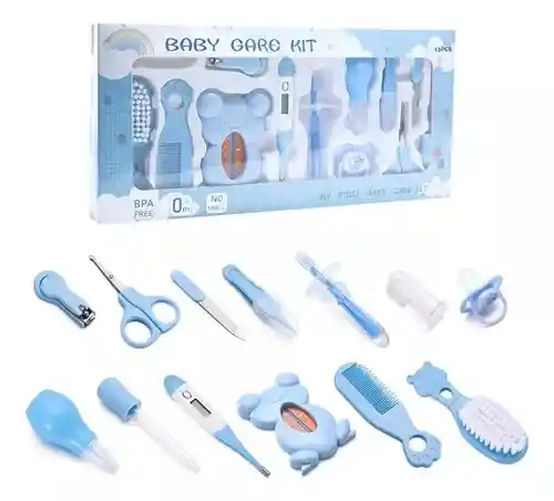 Este Kit Aseo Para Bebé Azul es el conjunto perfecto para el cuidado y la higiene de tu pequeño. Con 13 piezas esenciales, este set está diseñado para cubrir todas las necesidades de higiene personal y manicura de tu bebé de manera segura y eficaz. El elegante estuche azul mantiene todos los accesorios organizados y listos para usar en cualquier momento, facilitando el cuidado de tu bebé en el hogar o de viaje.