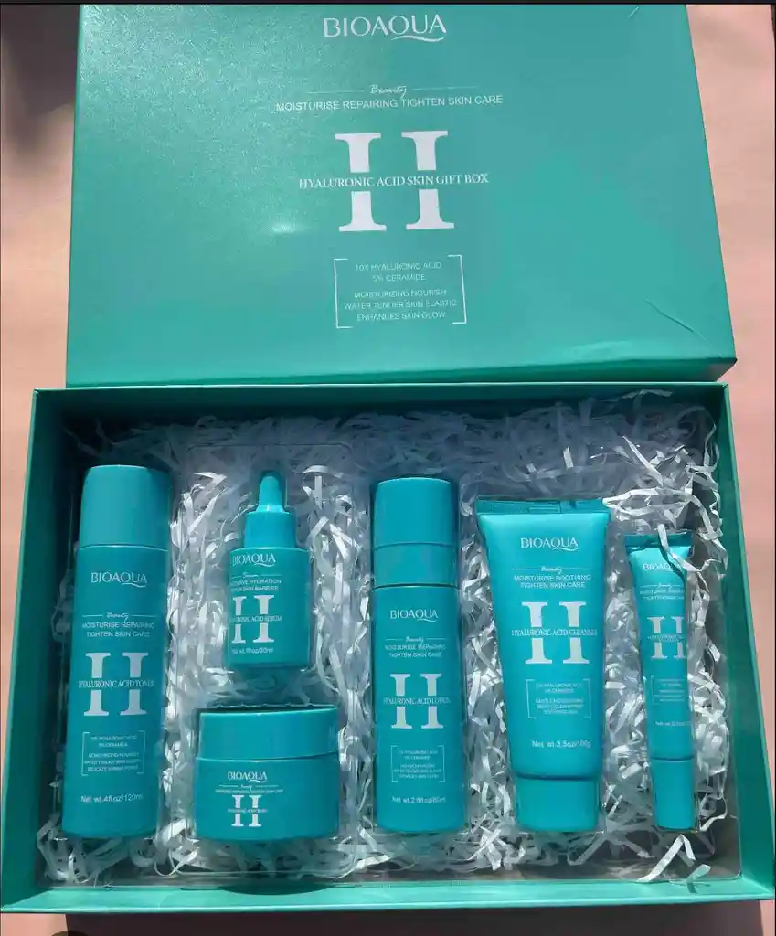 El ácido hialurónico proporciona una hidratación profunda y duradera. Ayuda a retener la humedad en la piel, dejándola suave, tersa y con una apariencia más joven. Combate los signos del envejecimiento. Reduce la apariencia de arrugas y líneas finas, dando como resultado una piel más firme y tonificada. Apta Para todo tipo de piel Modo de uso : 1. Jabón: Limpia tu rostro con el jabón (mañana y noche). 2. Tónico: Aplica el tónico sobre la piel limpia. 3. Contorno de ojos: Aplica una pequeña cantidad en el área del contorno de ojos, dando pequeños toques 4. Crema: Aplica la crema en el rostro seco (mañana y noche