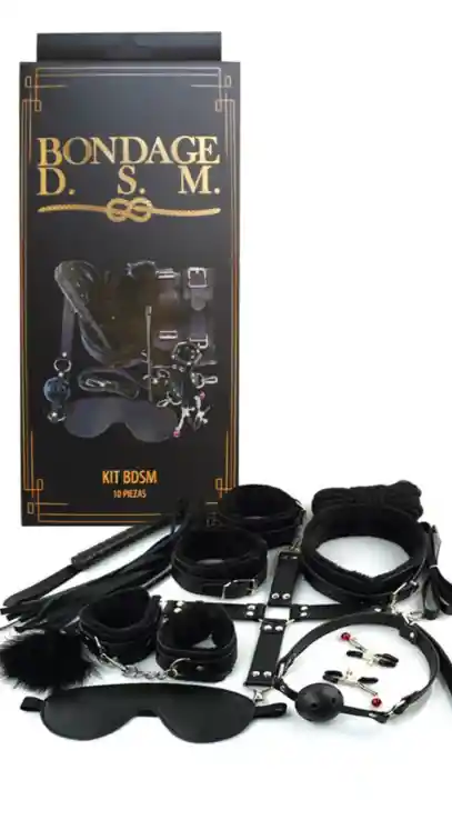 Kit de Sadomasoquismo 10 Piezas – Tu Fantasía, Tu Reglas Despierta tus sentidos y rompe la rutina con este exclusivo kit BDSM de 10 piezas, diseñado para quienes buscan experiencias intensas, sensuales y llenas de complicidad. Perfecto para principiantes curiosos o amantes del juego de roles y la dominación, este set te invita a explorar el placer del control… y la entrega. ¡Tus deseos serán órdenes! INCLUYE: Par de esposas Plumero Collar de sumisión esclavitud lazo látigo Par de pezoneras mordaza tapa ojos X o conector de esposas. Material cuero sintético