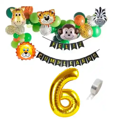 *********************GLOBOS Y PELUCHES MASMELO********************* Somos Mercado Líder Platinum Por tu compra te llevas: 1 Globo número dorado 82 cm (lo eliges dejando un mensaje al vendedor) 1 Festón negro 2 metros de largo 1 Globo cabeza de León 33x33cm 1 Globo Jirafa 33x33cm 1 Globo tigre 33x33cm 1 Globo mono 33x33cm 1 Globo cebra 33x33cm