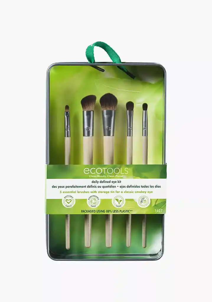Kit diario para ojos definidos de Ecotools Incluye brochas para difuminar, difuminar y definir, además de una brocha doble para aplicar delineador y pestañas. Elaborado con materiales libres de crueldad animal y diseñado para reducir los residuos plásticos, este set de maquillaje ecológico te ayudará a crear aplicaciones precisas y una rutina de belleza ecológica. Brochas: Gran sombra Pliegue en ángulo Sombra de acento Delineador de detalles Delineador manchado Características principales: Plástico reciclable Papel biodegradable Vegano PETA Cruelty Free Modo de empleo: SOMBRA: Aplique la sombra en el párpado con el pincel grande para sombras. LÍNEA: Agrega definición a lo largo de la línea de las pestañas con el pincel Detail Liner DIFUNDIR: Mezcla los colores con el pincel Liner Smudge ACENTO: usa el pincel Sombra de acento para agregar un toque de color adicional DEFINIR: Crea definición con el pincel Angled Crease en el pliegue del párpado. ORGANIZA: Organiza de forma personalizada tu rutina de belleza con el Beautify Brush