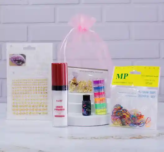 Súper kit ideal para esta época de carnaval!!!! ¿Qué incluye el kit? 1. Unos cauchitos de colores surtidos 2. Apliques para peinados (escoge el color que desees, dorado, plateado o surtidos) 3. 1 torre de pigmentos en polvo 4. Un polvo de hadas 5. Gemas para el rostro 6. 1 Pigmento liquido