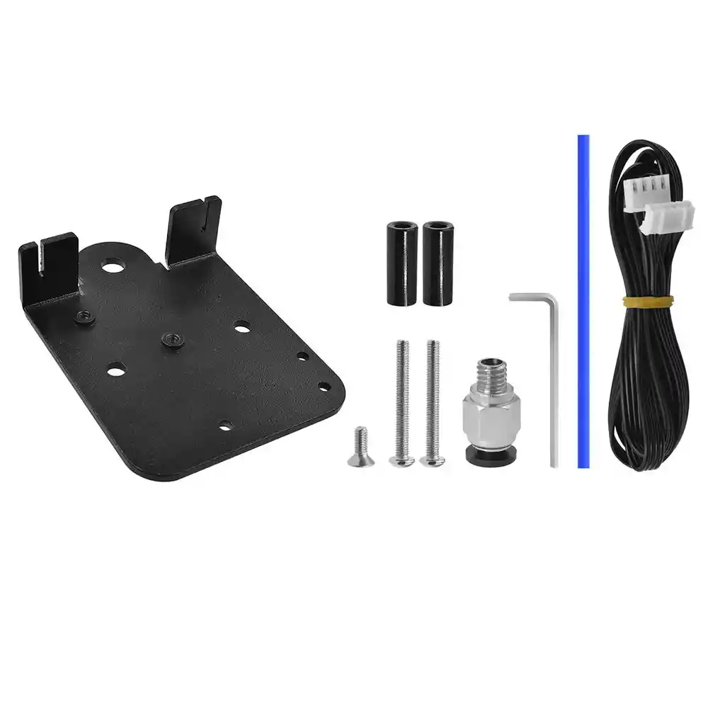 El extrusor original Ender 3 es de larga distancia, a continuacion, utiliza este kit de actualizacion de aluminio, puedes hacer que sea de conduccion directa. Este kit de actualizacion se actualiza uno, mas corto y mas ligero que la placa de transmision directa normal, que se acerca el extrusor al extremo caliente para un trayecto de filamento aun mas corto para imprimir mas suavemente. Material: aleacion de aluminio, compatible con Ender 3, Ender 3 Pro CR10, no apto para Ender 5. Utilizamos una manga corta transparente en el tubo azul PTFE para reemplazar los accesorios neumaticos PC4-m6 para insertar el agujero roscado del alimentador extrusor para hacer que el filamento se alimente sin problemas, por eso podemos hacer que este kit de actualizacion sea mas corto, que es la idea de uno de mis clientes Requiere una capacidad de instalacion, viene con 1 placa de transmision directa, 1 cable de 3.3 ft, 3 tornillos, 2 espaciadores, 1 tubo PTFE azul con una funda transparente y 1 escurridor. Tienes que instalarlos tu mismo. Si no sabes como hacerlo, por favor, busca el controlador directo ender 3 en Youtube, nuestra unica diferencia es que aplicamos una funda transparente para reemplazar los accesorios de alimentacion extrusora PC4-m6 El orden del cable del motor que se termina con el motor de conexion no es correcto, cambia la posicion de los dos cables del medio como se muestra en nuestro video en el listado. LA COMPRA INCLUYE: 1X KIT CARRO DESLIZADOR EXTRUSOR ENDER