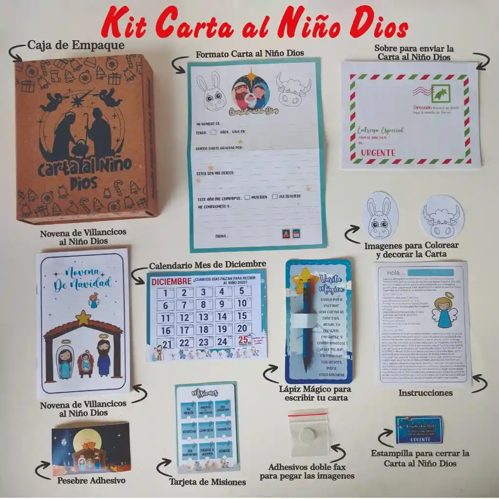 Caja de empaque/Novena/Pesebre Adhesivo/Formato de carta al niño Dios/Calendario/ MIsiones/Lapiz magico/Adhesivos/Sobre de la carta al Niño Dios/Imagenes para colorear/Estampilla para cerrar la carta