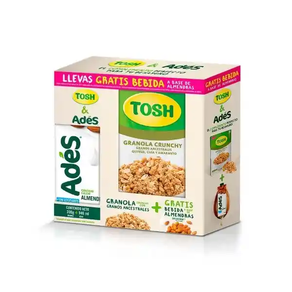 Kit Contiene 2 Unidades. Tosh Granola 330 g + Ades Bebida Almendras 946 mL.