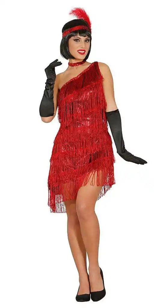 Este set incluye: · 1 Banda para cabeza pluma roja Charleston · 1 Guantes negros. · 1 Collar Perlas.