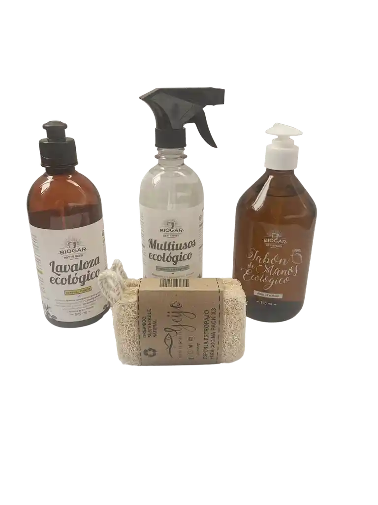 Jabón de Manos. Lavaloza y Multiusos Ecológico Biogar de 500 ml y Pack Estropajo x 3 para lava loza o exfoliar