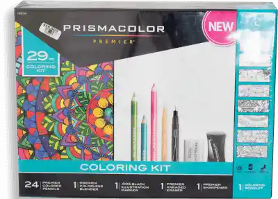 Kit Coloring: 24 Colores Premiun, 1 Blender, 1 Rapidografo, 1 Borrador, 1 Sharpener, 1 Libro Colorear. Marca Prismacolor