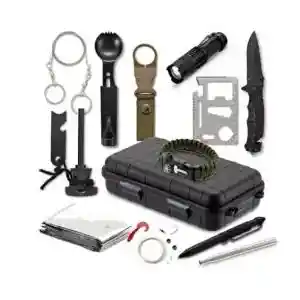 EQUIPO DE SUPERVIVENCIA IMPRESCINDIBLE: Este kit de supervivencia de emergencia profesional combina herramientas que incluyen un cuchillo de supervivencia mejorado, un bolígrafo táctico, una linterna led, una sierra de alambre, etc herramientas múltiples y más. ¡Dejándolo bien preparado para la próxima aventura o emergencia!