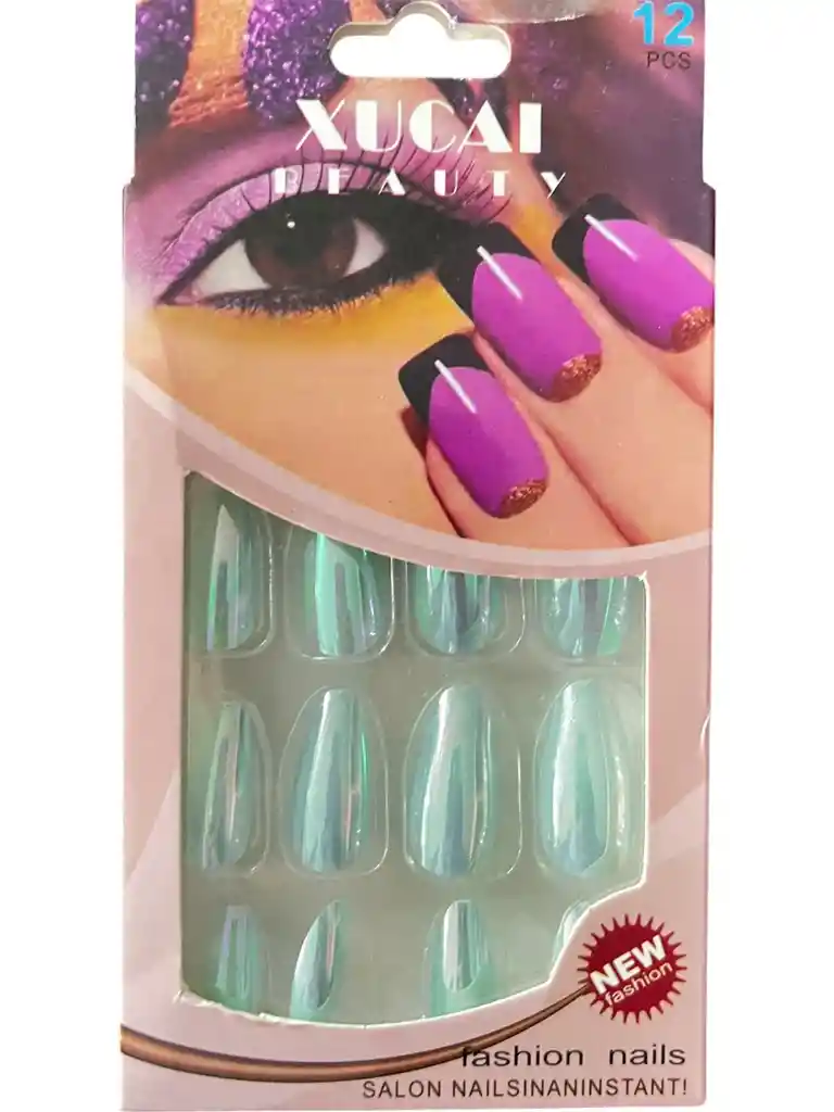 Kit completo de uñas postizas Xucai Espejo aguamarina - Uñas Press On con adhesivo - Ref 4