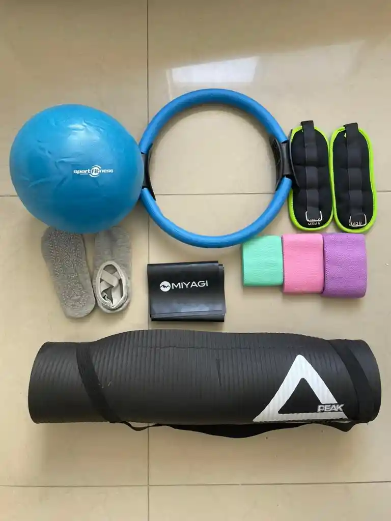 kit completo para yoga incluye kit de bandas por 3 banda theraband fuerte negro pesas tobilleras o muñequeras de una libra cada una (un kilo peso total) aro de yoga Balon de yoga pequeño 30C mat de yoga medias de yoga antideslizante