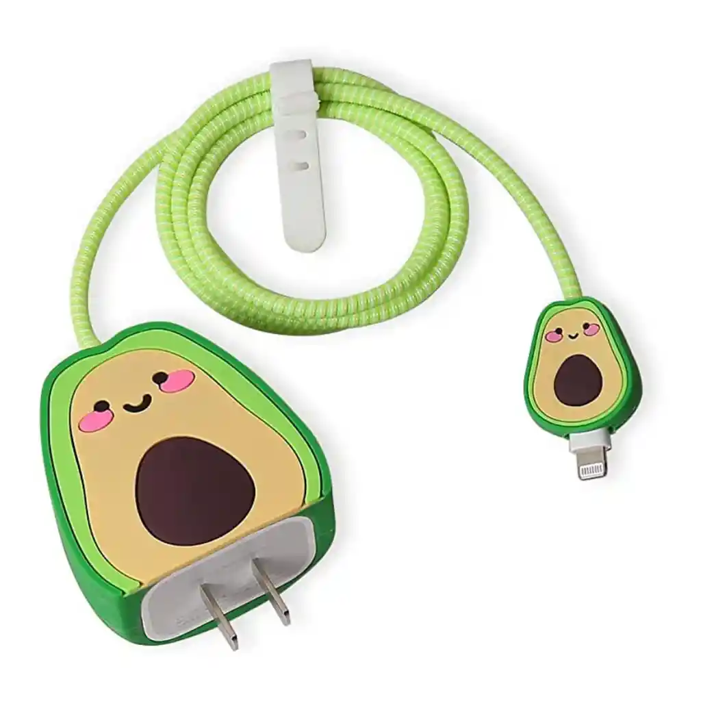 Kit Completo Protector De Cable + Protector De Cargador Iphone 18w/20w. Modelo: Aguacate