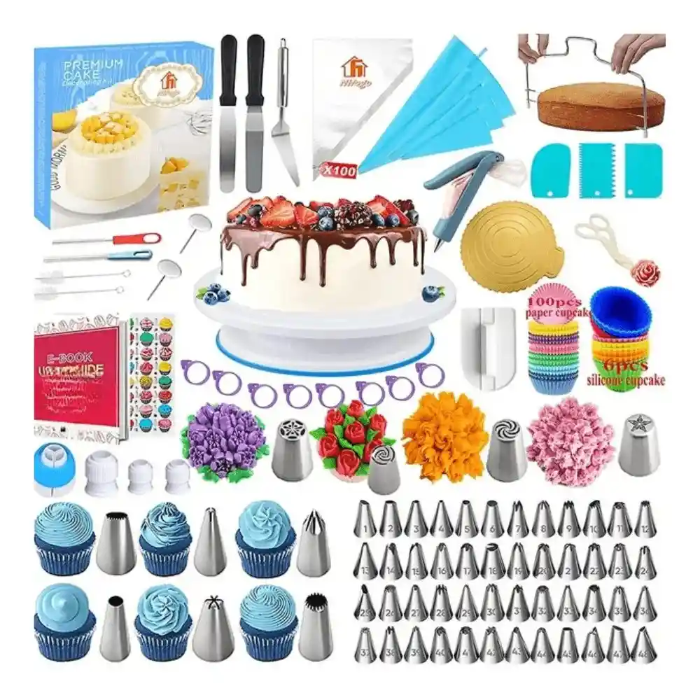 Kit Completo Reposteria 232 Piezas Decoracion Pasteles Cupcake Haz realidad tus creaciones más dulces con este increíble kit de repostería profesional de 232 piezas. Ideal para decorar tortas, cupcakes y galletas con acabados únicos y llenos de creatividad. Incluye mangas pasteleras, boquillas numeradas de acero inoxidable, espátulas, bases giratorias, moldes de silicona, cortadores, nivelador de pasteles, guías, tijeras florales y mucho más. Perfecto para principiantes y expertos, este set es ideal para celebraciones, negocios de repostería o simplemente para divertirte horneando en casa. Características: Incluye 232 accesorios para repostería creativa Boquillas de acero inoxidable con numeración clara Mangas reutilizables y desechables para diferentes técnicas Base giratoria para decorar con mayor precisión Moldes de silicona para cupcakes y papelitos coloridos Espátulas, raspadores, tijeras florales y más herramientas prácticas Fácil de usar, limpiar y almacenar Ideal como regalo para amantes de la pastelería o para iniciar tu emprendimiento