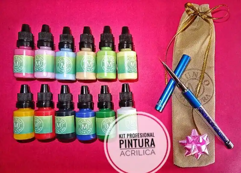 kit con pinturas acrilicas mas pincel de lujo