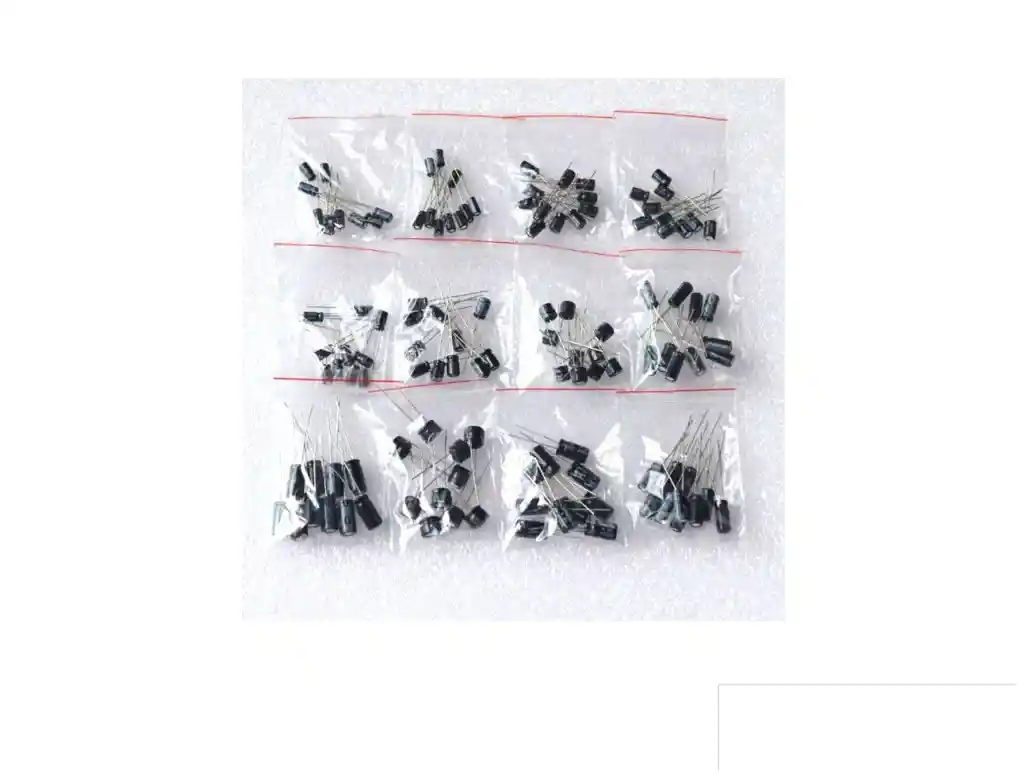 Kit condensadores Electroliticos. LA COMPRA INCLUYE: 0,22 50V x 10 Uds 0,47uF 50V x 10 Uds 1uF 50V x 10 Uds 2,2uF 50V x 10 Uds 4,7uF 50V x 10 Uds 10uF 25V x 10 Uds 22uF 16V x 10 Uds 33uF 16V x 10 Uds 47uF 16V x 10 Uds 100uF 16V x 10 Uds 220uF 16V x 10 Uds 470uF 16V x 10 Uds