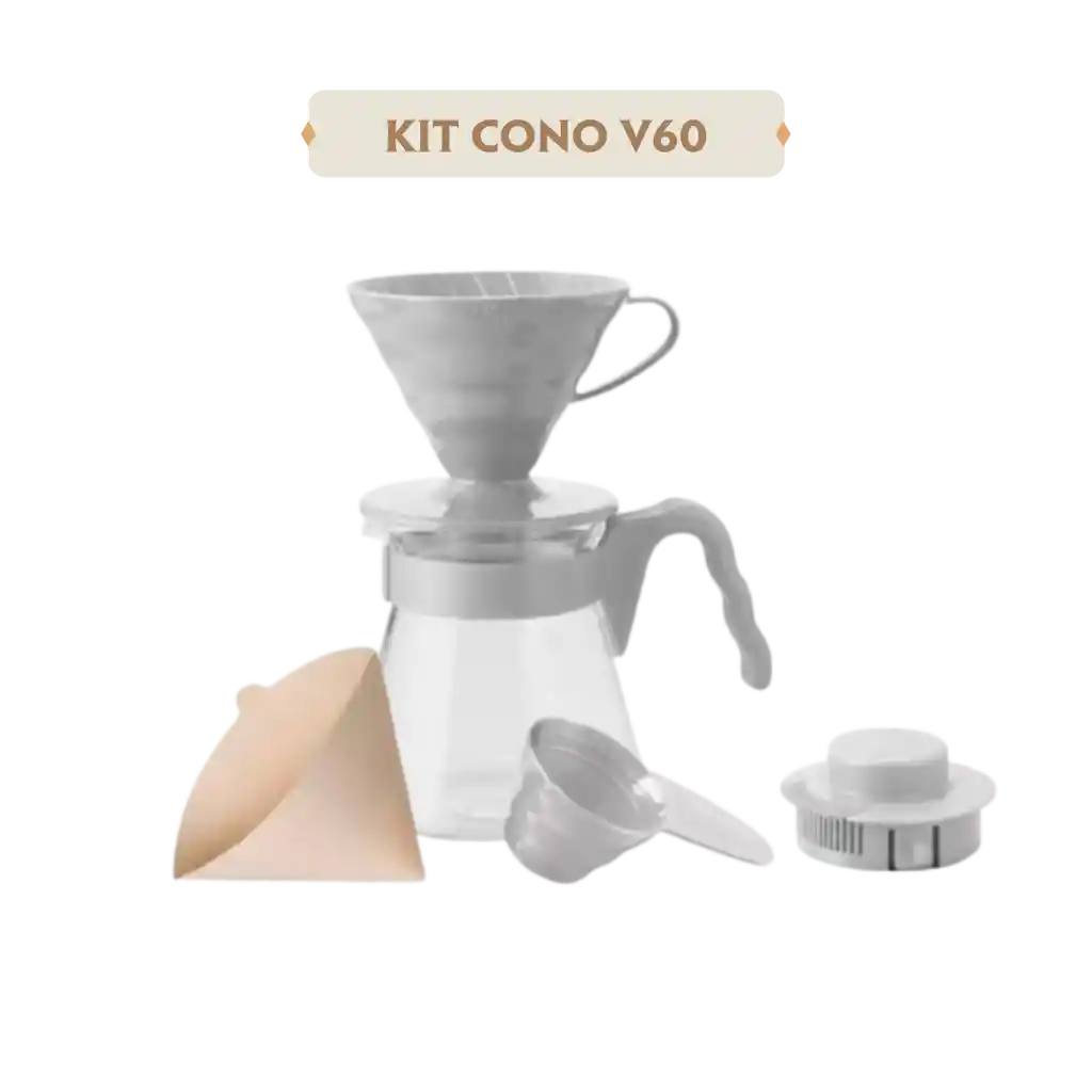 Incluye cono acrílico 02 + filtros 02 + server vidrio 02 + cuchara medidora