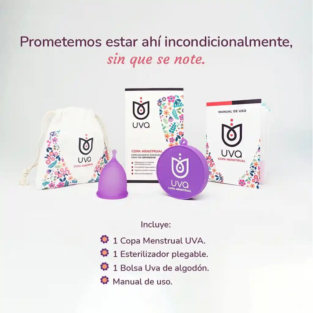 Kit completo: Trae la copa menstrual. esterilizador. funda para guardarla y 1 lubricante elixir. La copa menstrual es un recipiente que se usa para retener la menstruación. A diferencia de los tampones y las toallas higiénicas. esta no absorbe. si no que retiene el líquido. permite que sea lavada y reutilizada hasta por un período de 10 años.