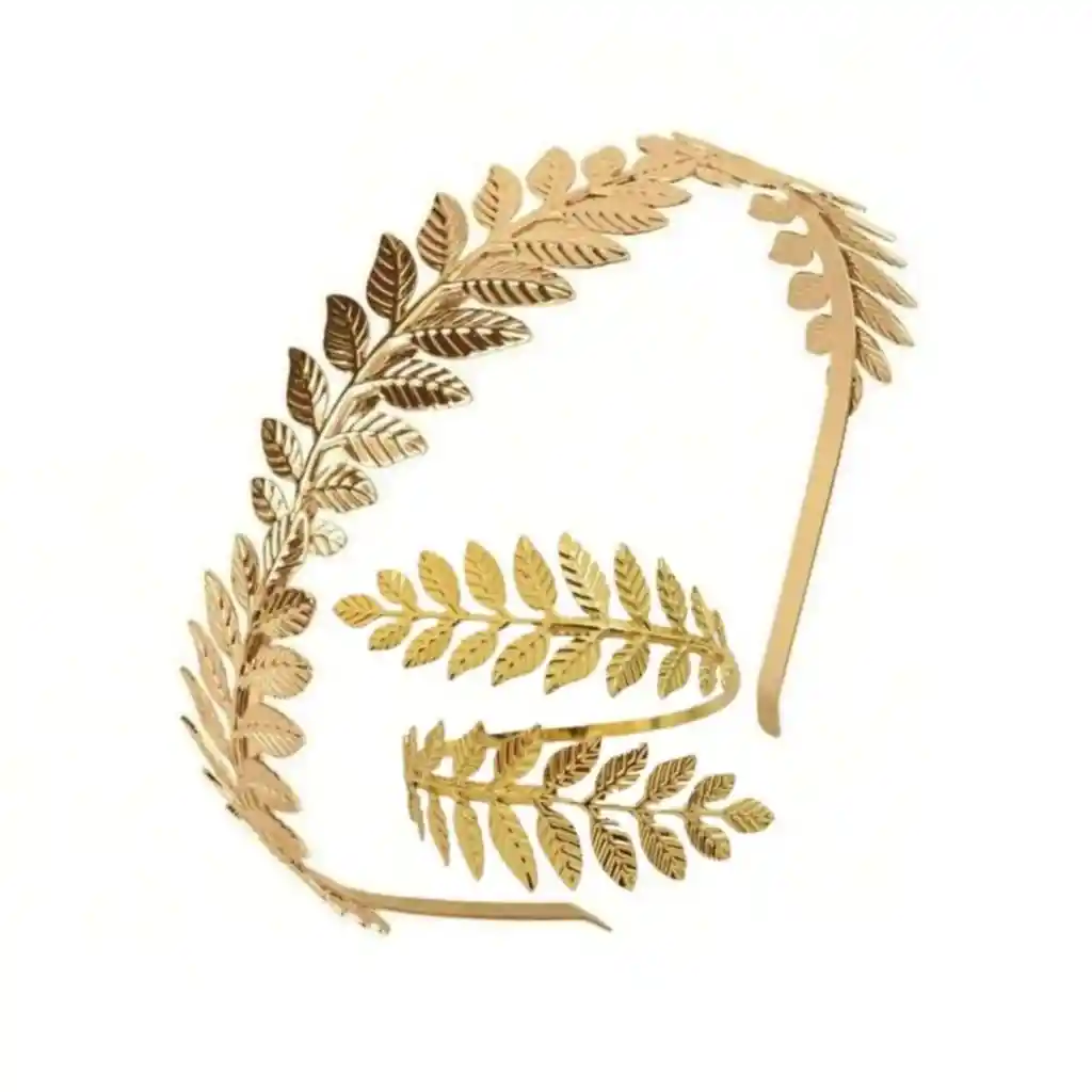 DESCRIPCION: Combo de diadema de diosa romana + Brazalete de hojas es un complemento ideal para tu disfraz con un color dorado y sus sus acabados son detallados para obtener una apariencia más brillante es muy adecuado para bodas, compromisos, aniversarios, graduaciones, fiestas, bailes, etc. DESCRIPCION DESTACADA: 💥Color disponible: Dorado 💥Estilo de hojas 💥Paquete contiene: 1 Corona de diosa romana, 1 Brazalete de diosa romana.