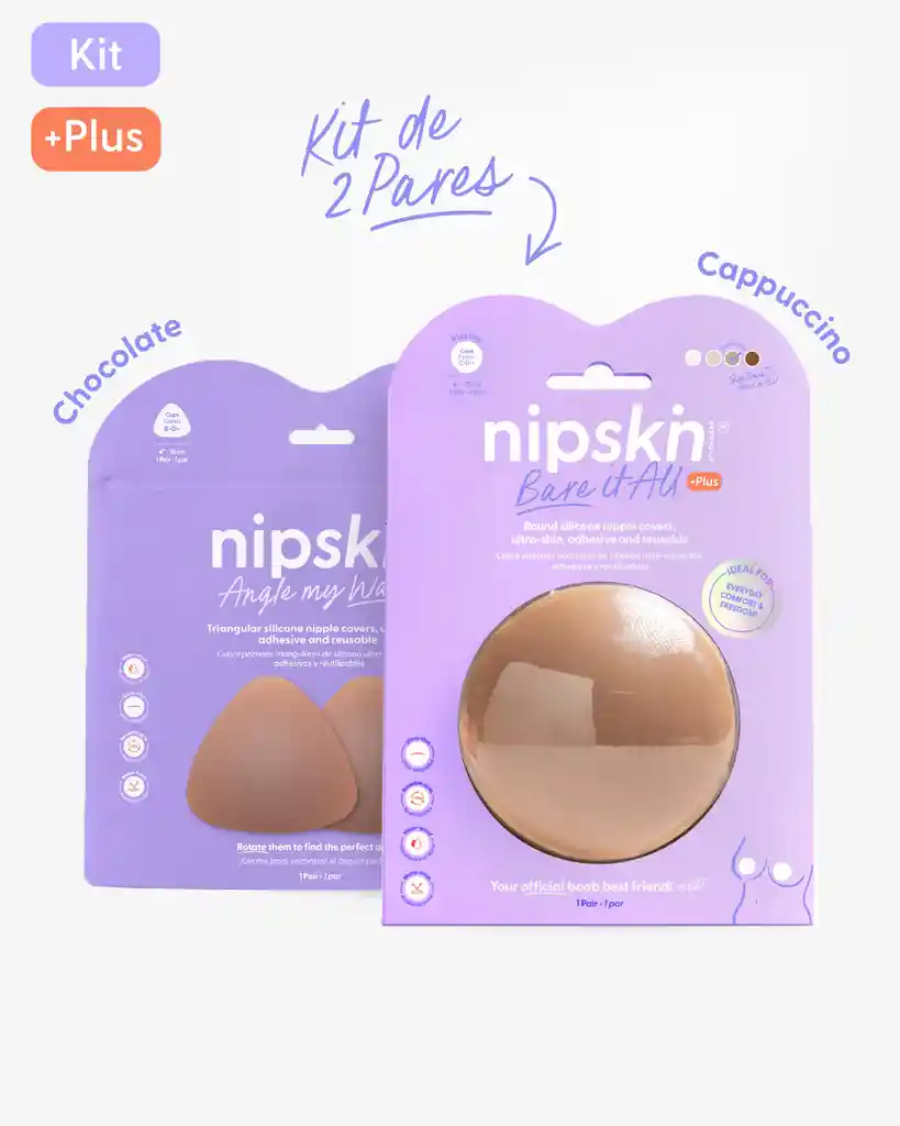 Cubre Pezones Adhesivos x2 Cubre Pezones Triangulares de Silicona Reutilizables. Cubre pezones triangulares reutilizables, adhesivo e hipoalergénicos, hechos 100% de silicona de grado médico. NO contienen látex. Tienen un acabado matte, lo cual permite que el producto no refleje luz debajo de la ropa. TALLA UNICA Vienen en un tamaño de 10 cm para brindarte mayor cobertura e invisibilidad. Recomendado para bustos medianos o grandes debido a su tamaño de 10 cm - talla plus. Color: Chocolate - Pieles morenas oscuras, subtono neutro. Cubrepezones de Silicona circular Reutilizable Nipskin, adhesivo e hipoalergénicos, hechos 100% de silicona de grado médico. NO contienen látex. Tienen un acabado matte, lo cual permite que el producto no refleje luz debajo de la ropa. PLUS: Vienen en un tamaño de 10 cm para brindarte mayor cobertura e invisibilidad. Ideales para copas C-D. Color: Cappuccino - Pieles morenas claras o bronceadas, subtono cálido.