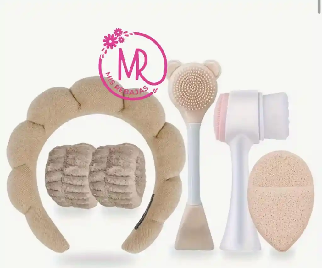 Incluye: diadema para cuidado facial o para maquillaje+ 2 muñequeras+ cepillo facial manual+ cepillo facial de silicona 2 en 1 (un lado tiene cerdas para la limpieza profunda de poros y el otro es una espátula para aplicar mascarillas)+ esponja de limpieza facial reutilizable (ideal para retirar maquillaje, celulas muertas e impureza).