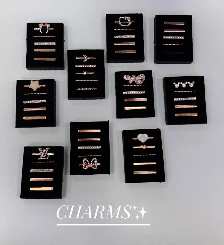 Kit de accesorios o charms decorativos para pulsos de Apple Watch. - Compatible con todas las medidas. - Marca: Genérica INCLUYE: 1x Cojín que incluye 4 o 5 charms (Depende del diseño seleccionado). *El diseño se envía a elección del cliente, según la referencia que aparece en el nombre del producto. Importante: Debido a la diferencia de pantallas y efecto de la luz, el color real del artículo puede ser ligeramente diferente al color mostrado en las imágenes.