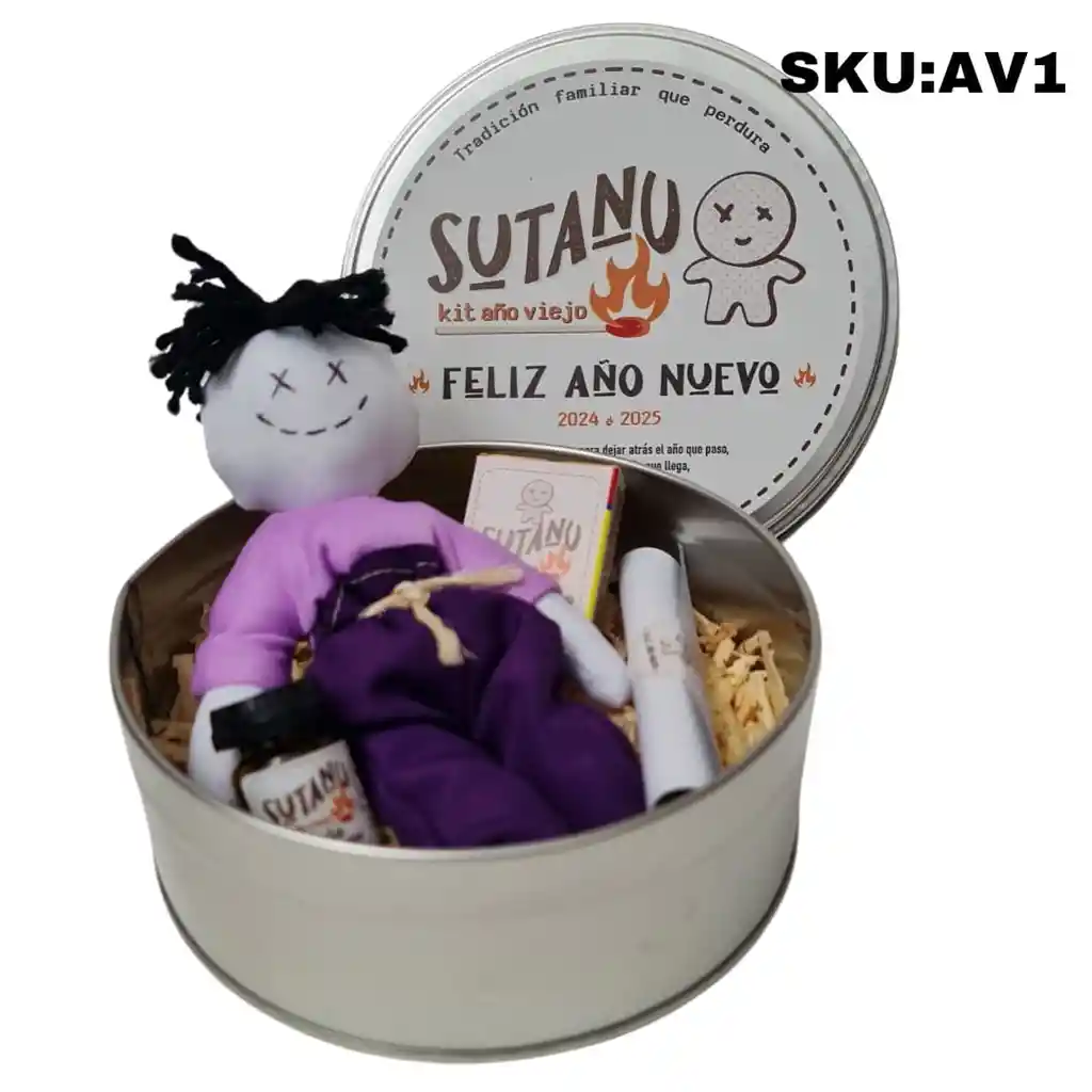 KIT DE AÑO VIEJO - Hombre Nuestros kits de año viejo vienen con: La caja metálica con tapa Aserrín El muñeco hombre para quemar Esencia de Madero Caja de Fósforos Hojas para escribir los nuevos propósitos y lo malo del año pasado y que quieres quemar.
