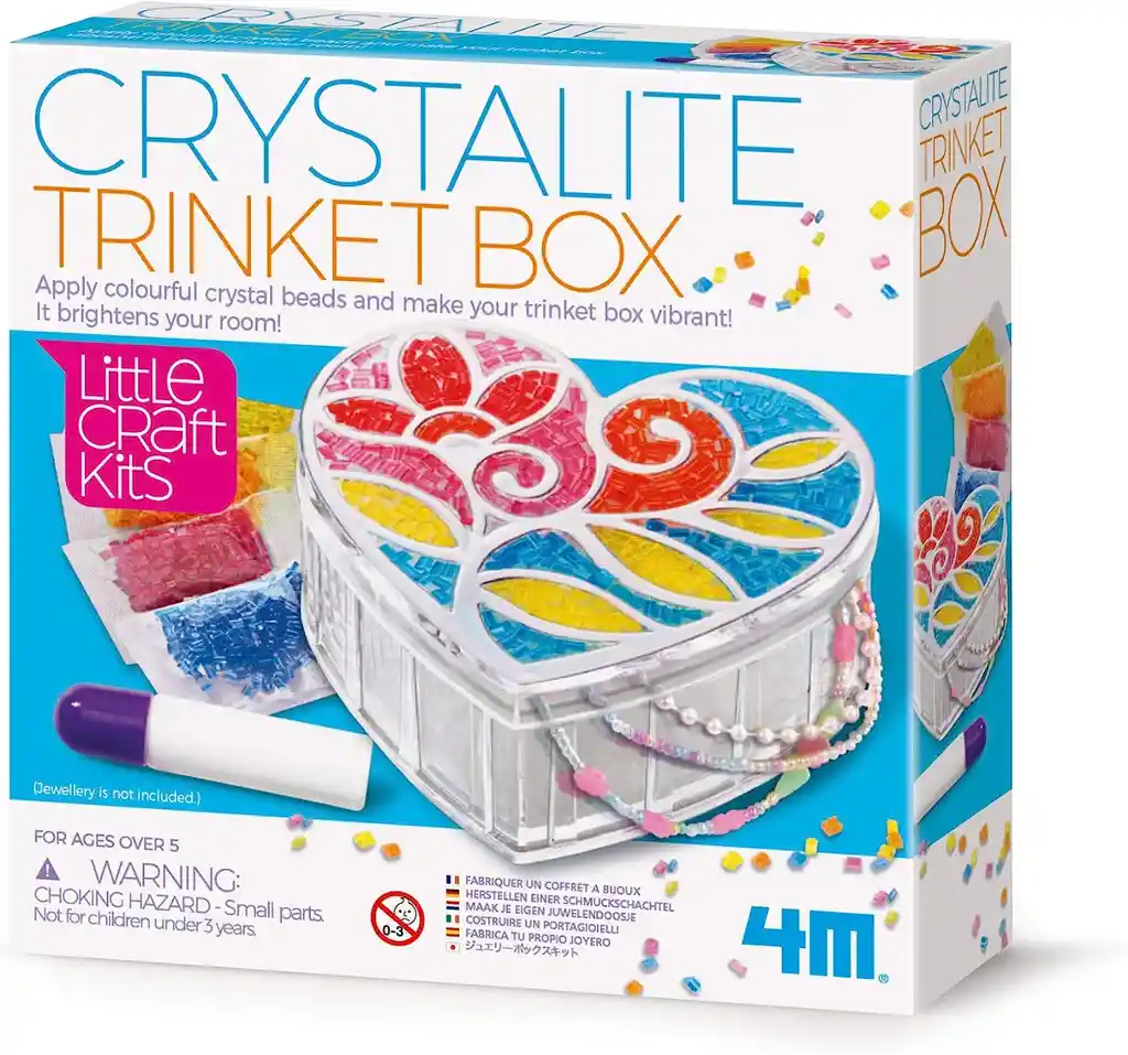Empaque de regalo sin costo adicional, escríbenos al finalizar la compra. 5 Años+ Descubre la belleza de las cuentas de cristal y crea tu propia cajita de baratijas con el emocionante juego Little Craft - Crystalite Trinket Box. Esta encantadora caja transparente (9 cm de ancho) te brinda la oportunidad de dar rienda suelta a tu creatividad y diseñar una obra maestra única. El juego incluye 4 bolsas de cuentas de cristal en diferentes colores, permitiéndote agregar un toque vibrante y brillante a tu caja de baratijas. Usa el tubo de pegamento incluido para asegurar las cuentas en su lugar y crea patrones deslumbrantes que iluminarán cualquier habitación. Con instrucciones detalladas, este juego es adecuado para niños y niñas que deseen embarcarse en una emocionante aventura artística. Pasa horas de diversión mientras decoras tu cajita de baratijas con cuentas de cristal y muestra tu creatividad a tus amigos y familiares. ¡Ilumina tu habitación con el brillo y la belleza del Little Craft - Crystalite Trinket Box! Tamaño: 17 x 17 x 5cm