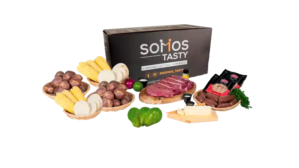 Kit de Asado Soy Tasty Para 10 Personas Incluye 1 Recetario 2000 g de Beef Chorizo Premium Carne de Res 500 g de Longaniza 1 Kg de Morcilla 1500 g de Papa 10 Arepas Con Queso 5 Mazorcas Guacamole Aguacate Cebolla Roja Cebolla Limon Aceite Mantequilla Sal Gruesa Sal y Pimienta 1 U