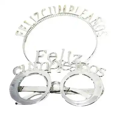 Kit de balaca y gafa plateada FELIZ CUMPLEAÑOS
