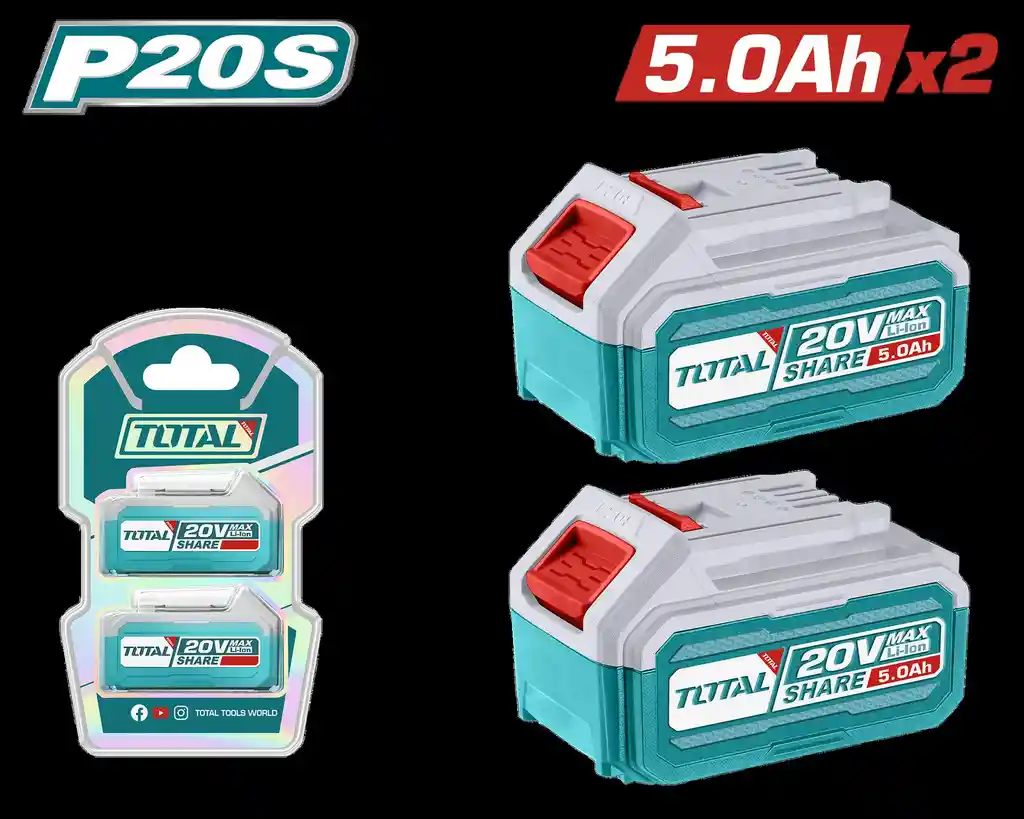 KIT DE BATERIA X2 PZS 20V 5,0AH INDUSTRIAL ION LITHIUM INDUSTRIAL SUPER TOTAL (TOSLI240464)