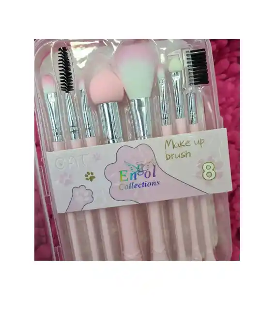 Kit De Brochas Para Maquillaje Cat Rosado Engol x8 unds