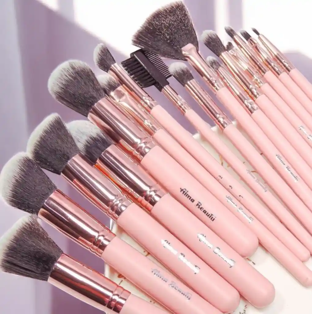 Este elegante set de brochas de maquillaje combina estilo y funcionalidad para brindarte un acabado profesional. Su diseño en tono rosa con detalles metálicos dorados le da un toque femenino y moderno. Las cerdas son extra suaves y densas, ideales para aplicar productos líquidos, cremosos o en polvo con precisión y sin dejar líneas.
