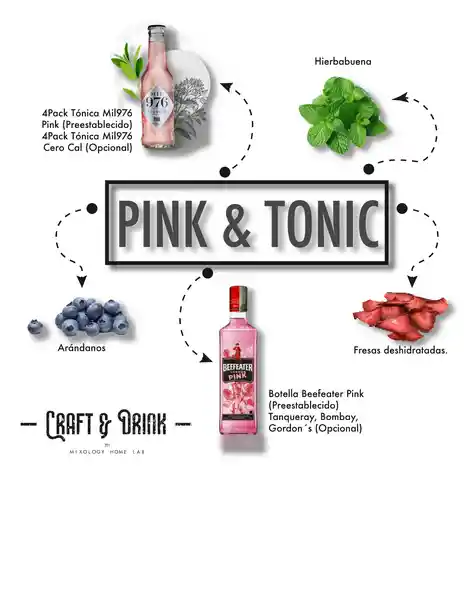 Box Compuesta Por Botella De Ginebra Marca Beefeaters Pink; Arándanos; Fresas Deshidratadas; Hierbabuena; Agua Tónica Marca Mil 976 Cero Calorías. Incluye Recetario Y Portavasos. Cantidad Aproximada Para 6-8 Cócteles Por Box | . Prohíbase El Expendio De Bebidas Embriagantes A Menores De Edad Ley 124 1994.