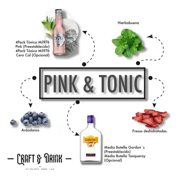 Box Craft & Drink Incluye: Gordons Media Botella De Ginebra 1 Und + Arándanos + Fresas Deshidratadas + Hierbabuena + Mil 976 Agua Tónica Cero Calorías 1 Und + Recetario 1 Und + Portavasos. Cantidad Aproximada Para 6 - 8 Cócteles Box. .. .